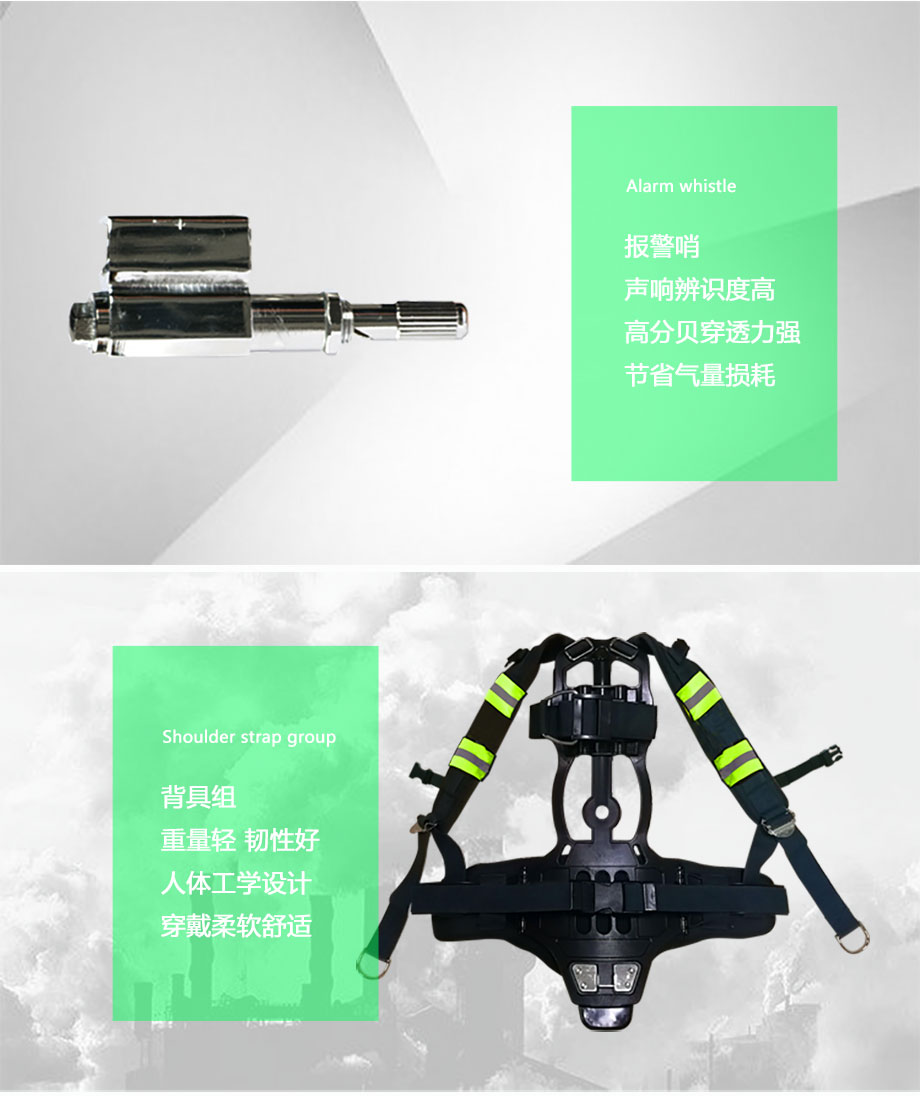 | 產(chǎn)品特點(diǎn): | ?面罩視窗經(jīng)防霧和硬化處理,視野寬闊清晰,密封膠體柔軟,氣密性好。面罩與供氣閥的連接采用插口式,裝卸快捷簡(jiǎn)便。面罩上設(shè)有傳聲膜片,使佩戴人員獲得清晰的通訊效果。?供氣閥徑向和軸向尺寸較小,使面罩下視野得以擴(kuò)展,供氣量大,性能穩(wěn)定,吸氣阻力小。?警報(bào)器使用輕便,在4~6 MPa氣瓶壓力下開(kāi)始發(fā)出聲響警報(bào),表示空氣呼吸器還可以繼續(xù)使用5~8 min,便于提醒佩戴人員及時(shí)撤離現(xiàn)場(chǎng)。警報(bào)器安置在佩戴者胸前,即使在噪音較大的工作現(xiàn)場(chǎng)也能清晰聽(tīng)到報(bào)警聲。?所有連接都采用快速插接,不需要專用工具,操作快捷,佩戴和脫卸也非常簡(jiǎn)便。?背具由阻燃工程塑料注塑成型,符合人體工程學(xué)設(shè)計(jì),外形完全貼合人體背部曲線,接觸面大,配戴舒適。肩帶和腰帶采用阻燃材料,并有柔軟腰墊和肩墊,佩戴舒適。 |