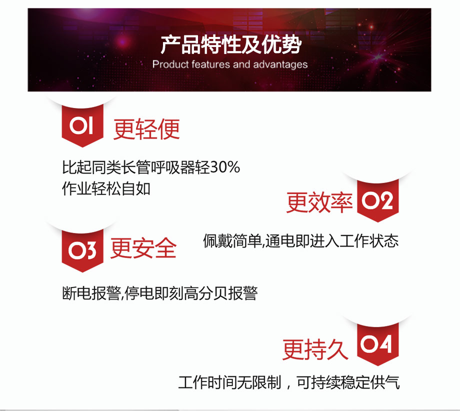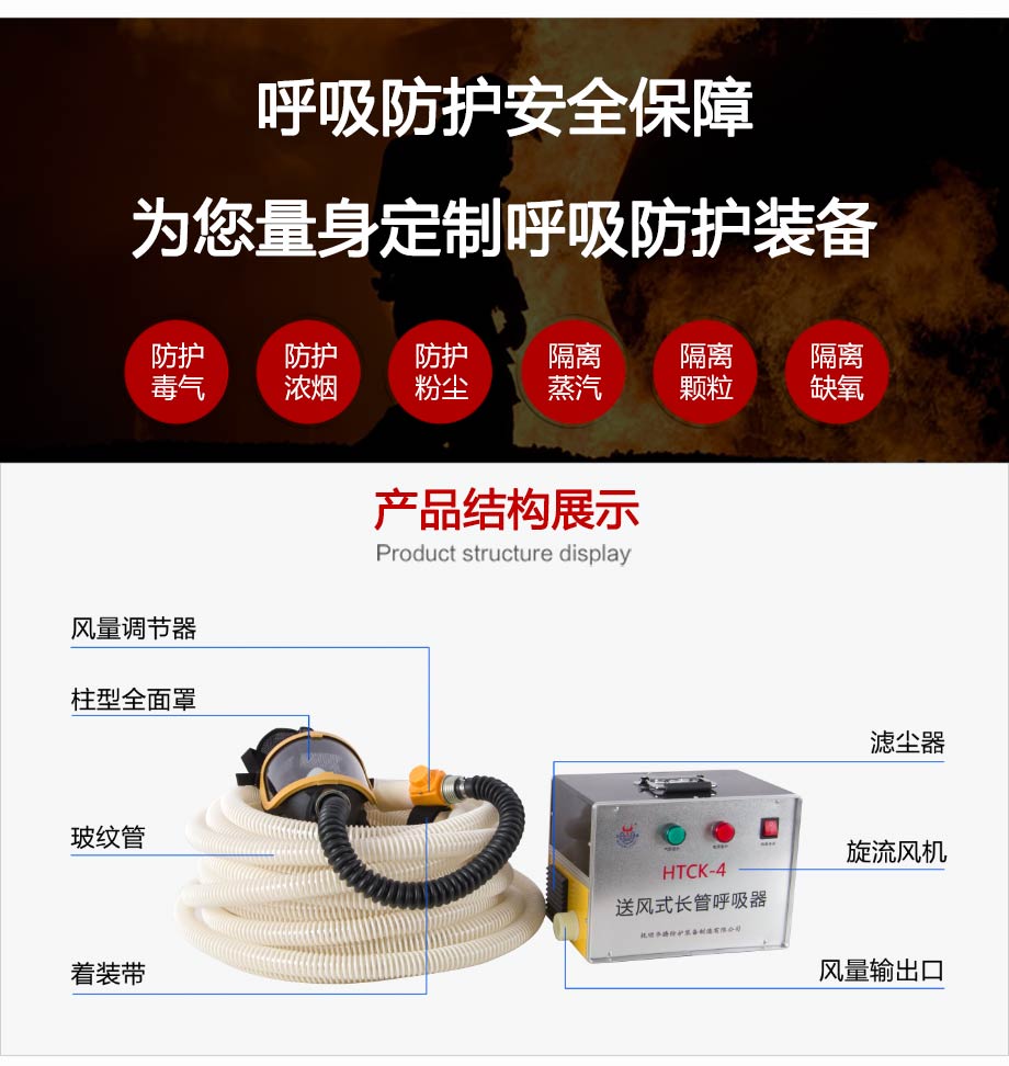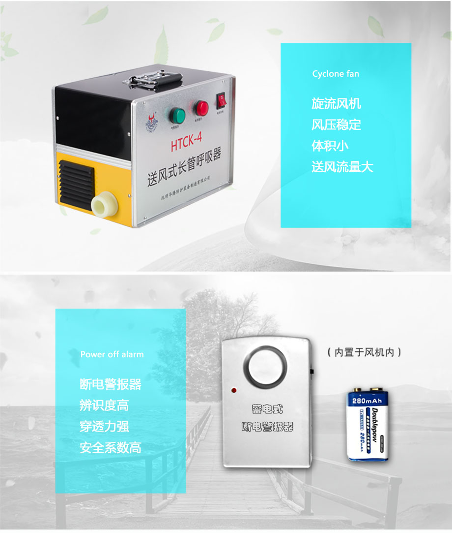 | 產(chǎn)品特點: | 斷電不斷供氣,內(nèi)置蓄電池可保停電后持續(xù)工作3小時(適用于HTCK-4BX型);斷電報警,停電即刻高分貝報警聲,提醒佩戴者需立即撤離工作現(xiàn)場(不適用于HTCK-4BX型);工作時間無限制,可持續(xù)穩(wěn)定供氣;供氣量充足,滿足不同勞動強度的呼吸量需求;供氣量可調(diào)節(jié),不戧風也不憋氣。 |