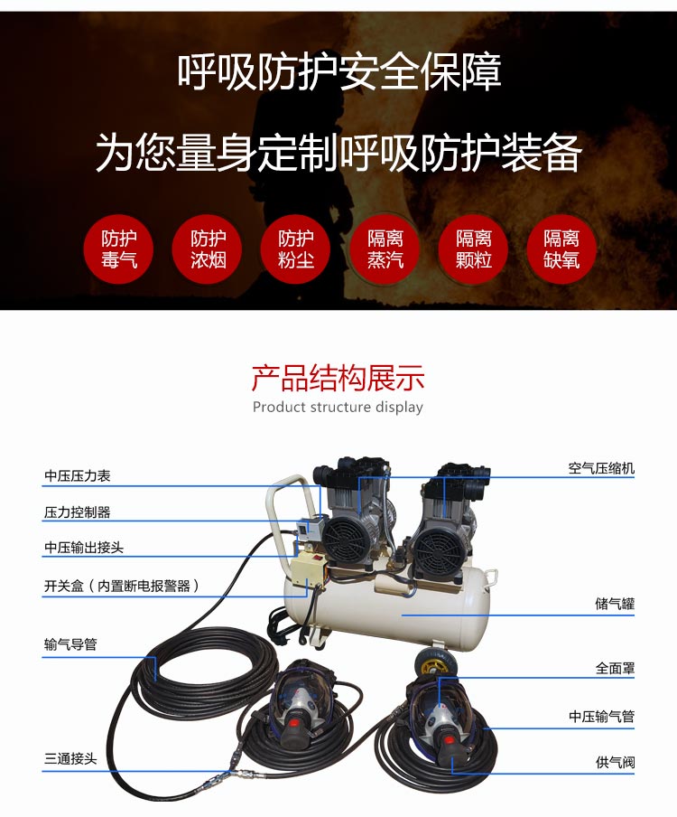 適用范圍:適合在有毒有害氣體污染環(huán)境、或缺氧窒息性災害發(fā)生時使用,例如礦山自救逃生、高層樓宇逃生等,同時也可在石油化工、隧道工程等。